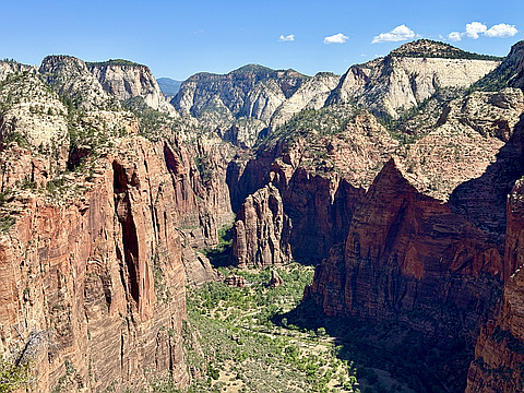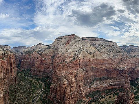 "This morning we tackled the infamous Angel’s Landing- arguably the most iconic hike of the National Park system, and a bucket list climb for hiking’ peeps nationwide. We hopped on the first morning shuttle to the trailhead to avoid the large crowds that this hike draws. The trail walks the lovely Virgin River a ways before turning into Refrigerator Canyon, then goes directly up the rock face via a serious of endless switchbacks to the jewel of Angel’s Landing- the dizzying knife edge climb to the summit. It’s a fun scramble that offers plenty opportunity to bravely peer over the 1000+ foot walls on either side into Zion Canyon below. It was our first of three mountain summits for the day." — wacbravo • Apr 5, 2019