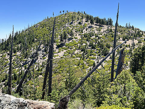 "Hiked to Icehouse Saddle to start out. Then took the Ontario Peak Trail to a saddle below Bighorn Peak. From there, I took the summit trail to Bighorn Peak. Along the way, I diverted off the path to summit Peak 8210. After visiting both peaks, I formed a loop back down to Icehouse Saddle, followed by a long rocky walk back to the parking lot." — MikeTeeples • Jul 6, 2025