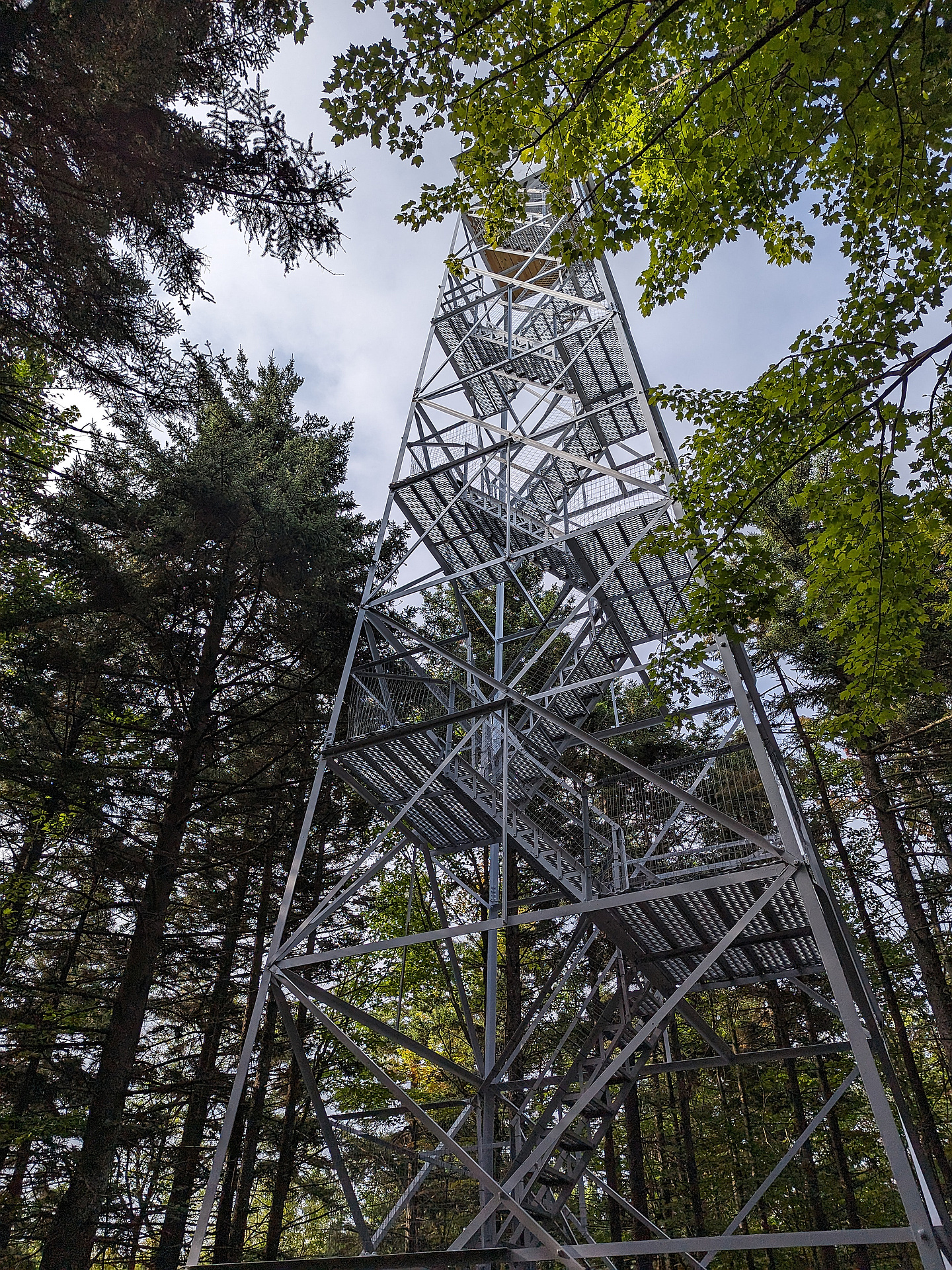 "Short hike, but very nice thru the forest. Trail crews have done an outstanding job with the stone steps, wood ladders and planking. Quite muddy in a number of areas, but no bugs and the weather was perfect. The fire tower looked pristine and felt very secure. Views from the cab were great with a few of the high peaks toward the Northeast and Little Tupper Lake prominent." — TJandMS • Jun 15, 2024