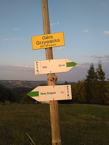 "Wyprawa geocachingowa. Wieczorem 20 lipca 2019 roku postanowiłem zrobić krótką trasę zielonym szlakiem z Kątów przez Górę Grzywacką, potem zgodnie z drogą krzyżową wrócić do drogi. Choć był to słoneczny dzień, to jednak o tej, dość późnej godzinie bezsensownie wybrałem się jedynie w t-shircie, więc po drodze zmarzłem. Gdy dotarłem do szosy byłem już pewien, że złapię przeziębienie." — haudek • Jul 20, 2019