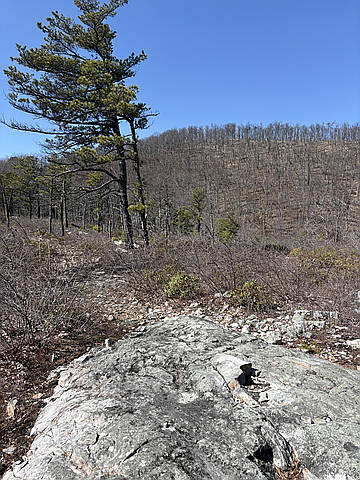 "After competing in the Montvale 8 1/2 mile trail race, I went out for more miles and mountains. I slowly and painfully jogged a new circuit that included phenomenal views of the Blue Ridge Parkway and mountains. Spectacular views along the ridge and burnt forest. Views in every direction, including back toward the race course I had just finished. This loop instantly became a favorite that I will enjoy again in the near future. (part of the Glenwood Horse Trail up to the BRPkwy)" — runshigleyrun • Feb 28, 2026