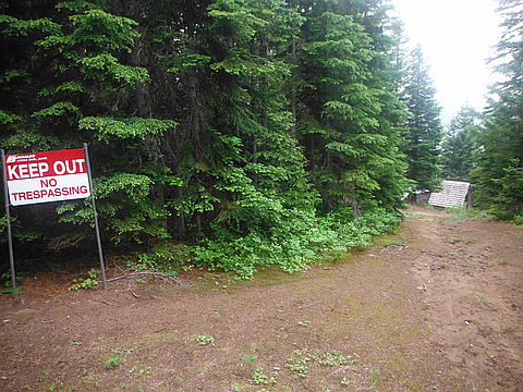 Stay on the main road, to the right, at the first junction. The next turnoff,also to the left is gated and posted "No Tresspassing, Private Property". I'm fairly certain now that this is the road on the map, but I continued to the right for another mile or so until reaching a small lake/big pond with a nice little campsite. It was here that I realized I was heading south an..." — Jeb • Jul 20, 2012