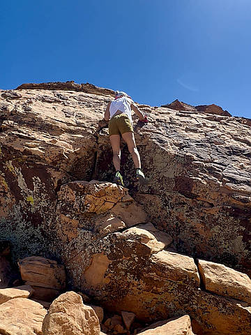 "Easy trail, lots of small crags throughout that could yield potential routes with some work. The fun summit headblock was short and exposed for about 15'. 4th class just be careful what you grab as the name of the peak implies.even though there were sustained 30mph winds along the ridgeline it was a good outing." — MikeERodriguez • Aug 9, 2025