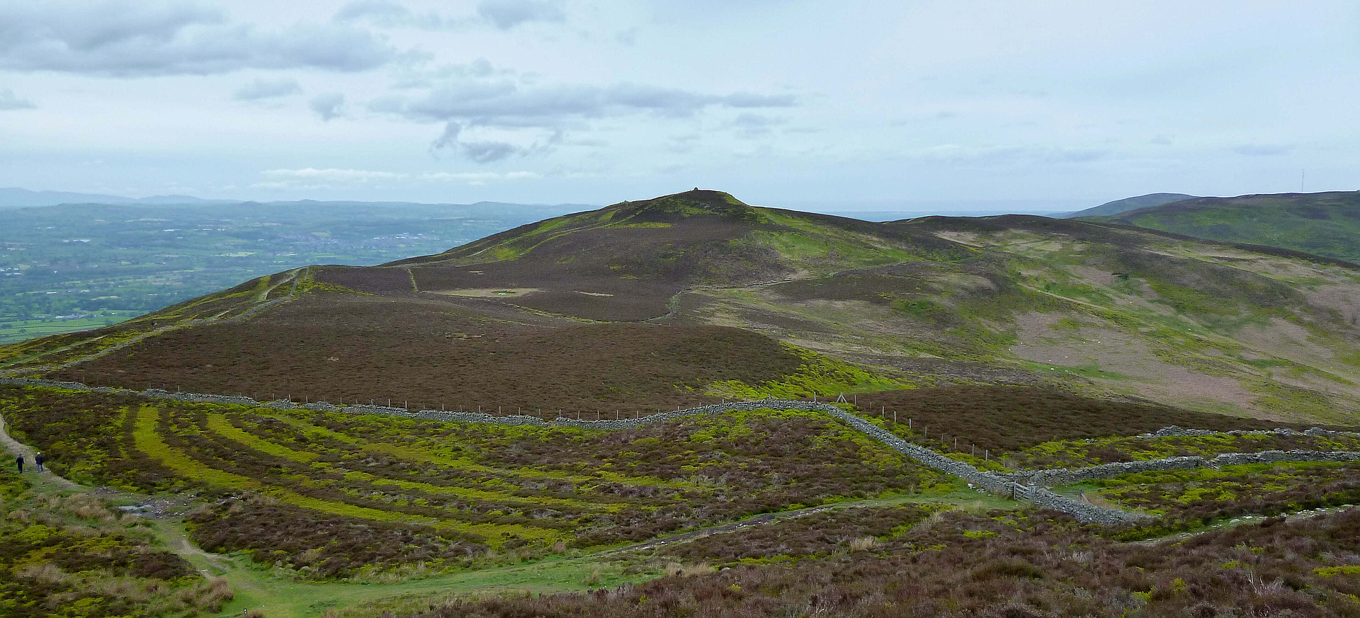 "From Afon-wen. Took the lane and track up to join the Offa's Dyke Path south over Penycloddiau, Moel Arthur, Moel Dywyll and Moel Fama. Then down via Pt. 464m and Ffrith Mountain to Cilcain. Solo.