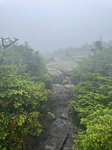 "Day two of the Presidentials in NH. It was too socked in too see anything from the peaks, but it would've been beautiful. The southern peaks are much less prominent so are easier. Monroe and Little Monroe were just a quick jog from the hut, and Franklin was just a bump. Eisenhower made for an interesting ascent, because there is some krummholz close to the top. Pierce felt pretty short compared to the others, but it was challenging on the way down. The descent felt eternal and it was definitely a slog at times. Overall, and incredible trip and it was truly a once in a lifetime experience." — elimihuta • Jun 28, 2025