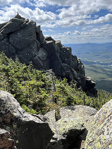 "Beautiful day with minimal cloud cover. A little humid in the morning but that cleared up in the afternoon. Set off from the Whitehouse Trailhead just after 8:45am. The Whitehouse Trail covers about a half-mile of a relatively flat forest path before connecting with the Franconia Notch Bike Path. Right at the intersection with the Bike Path is a small unofficial trail which has an overlook of the Pemigewasset River. After following the Bike Path over a bridge, the Liberty Spring Trail splits off and begins a moderate rocky ascent with one large switchback. This continues for about a half-mile before the intersection with the Flume Slide Trail. The Flume Slide Trail is very mild for the first 2.5 miles, rising only 900 feet. There are several brook crossings, and it was cool to know that all of those brooks eventually reached the Flume and Liberty Gorges which I had visited numerous times as a kid. After one crossing the forest suddenly changed from a bright, primarily deciduous collection of trees to a much darker evergreen section. Soon after, I reached the beginning of the steep uphill climb. The 4-mile approach to the Slide took me roughly 2 hours. There is about a quarter-mile ..." — JCalautti • Jul 20, 2024