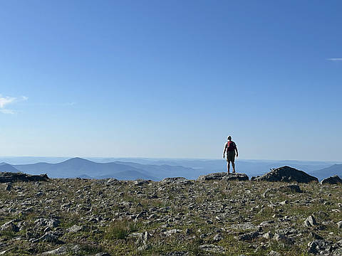 "As far as weather in the Presidentials go, could not have asked for a better day. Clear skies with only minimal cloud cover later in the afternoon, mild temperatures, and even the forecasted 10mph winds dropped to a light breeze. Car spot with a friend parking at the Base Station and I drove the group to Caps Ridge Trailhead. We set off from the trailhead just after 8am. Starting off at 3000ft. meant we were already in a subalpine forest and quickly emerged at the first optional "cap" about a mile in. After briefly dipping back into the trees, we entered the alpine zone and began scrambling up the caps. They weren't as intimidating as I expected and I enjoyed the variety in terrain. Soon after the last cap is the intersection with The Cornice which marks the beginning of climbing over boulders until we reached the summit just before 11:15am for my 14th NH 4000 Footer. The summit area is a relatively flat boulder field with 2 larger piles. The western pile is the true summit, and both were swarming with giant moth-like insects. We didn't stay at the summit of Mt. Jefferson for too long on account of the giant insects, so we climbed down the boulders on the Mt. Jefferson Loop, linked..." — JCalautti • Jun 16, 2024