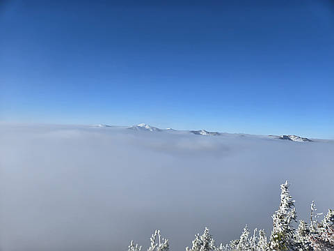 "Tom and I summited Nippletop at 12:50 pm after a long slog from St.Huberts. Just below the summit, we broke out above an inversion to full sun, warmth and low winds. The inversion gave the feeling of looking out over a huge frozen lake with a few mountain peaks poking above the clouds like islands. Truly a beautiful sight." — garyogden • Dec 27, 2025