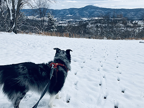 "Some great snow fell on the Roanoke Valley, so Jake and I headed up one of our favorite mountains. Although there was no view, the falling snow and crunchy footing made for an enjoyable jaunt through the white forest with Jakers. " — runshigleyrun • Feb 19, 2025