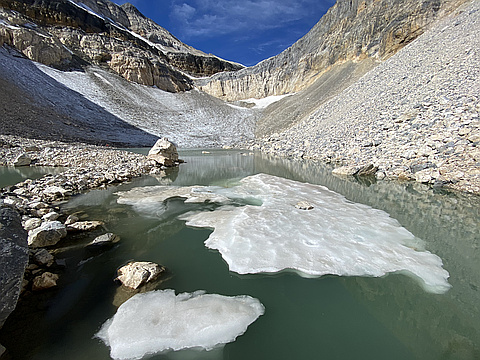 POSTSCRIPT: In 2025 Doug Lutz found that the glacier had shrunk so far that getting up the headwall would no longer be classified as a scramble." — geoffhardy • Sep 25, 2022