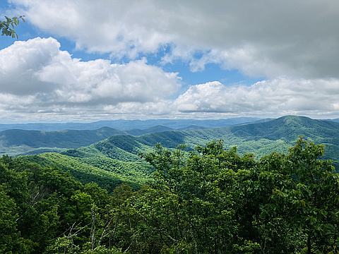 "Hiked with my brother-in-law, Duver, up to the amazing, lush cliffs. One of the toughest climbs in the Roanoke Valley. Views were spectacular on this particular day with clouds providing shadows in the valley. " — runshigleyrun • Jun 18, 2025