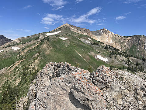"Absolutely brutal but amazing trail! It starts out very nice and easy, just switchbacking up the mountain. Lots of viewpoints to see timp. Once you start to push to the summit of geek peek, it gets brutal. Super steep and tiresome, but rewarding! All of the summits are just hiking, except Red Baldy is a pure class 3 scramble. The descent from Red Baldy is also extremely loose and steep, painful. I tried to look for another descent, but it would all be the same. 5x 11ers makes this hike a peak baggers dream!" — easton • Aug 21, 2024